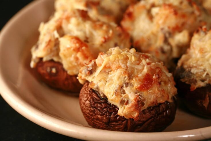 Shrimp and Artichoke Stuffed Mushrooms - a hearty but elegant appetizer.