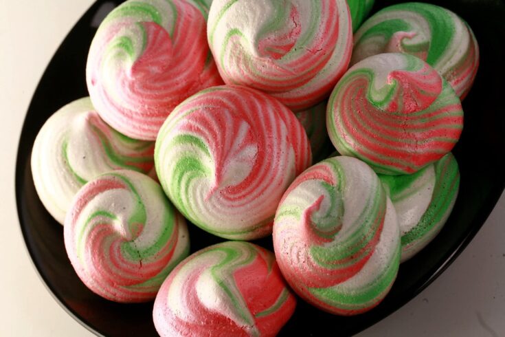 These Peppermint Swirl Meringue Cookies make use of 3 colours for a pretty effect!