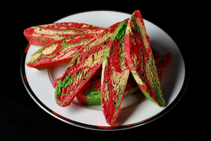 This marbled peppermint Candy Cane Biscotti recipe is fun to make, pretty to look at, and festive!