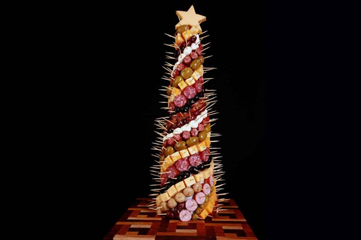 A traditional charcuterie spread - just vertical, in Christmas tree shape!